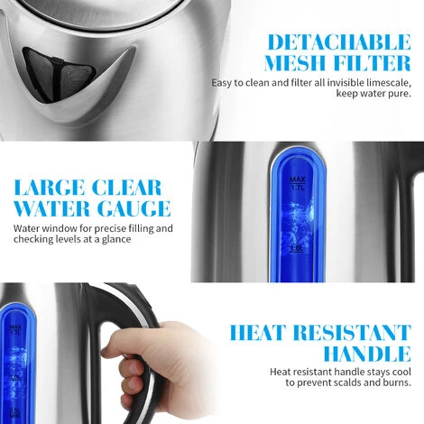 Capacidad y potencia increíbles. Gracias a sus 2200W de potencia, al poner el agua en su interior, podrás comprobar la rapidez con la que podrás disponer de ella a una temperatura perfecta. Controla el nivel de agua. Gracias a su indicador de nivel de la manera más fácil y cómoda.