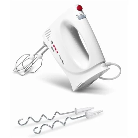- Equipada con dos varillas batidoras y dos garfios amasadores.