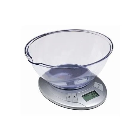 Balanza de cocina digital 5 Kg. Div. 1 gr. Incluye bol de 2,4 L. Alarma y termómetro.