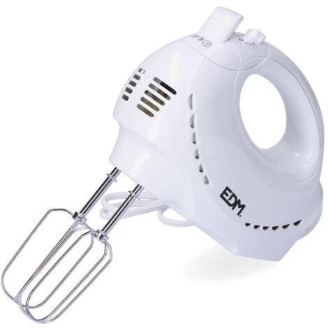 <br>Batidora amasadora turbo. potencia: 200w. 5 niveles de potencia . mango ergonomico. 2 juegos de varillas cromadas de 16,3cm. dimensiones: 8x19x15cm (ancho/fondo/alto) 220-240v 50hz edm