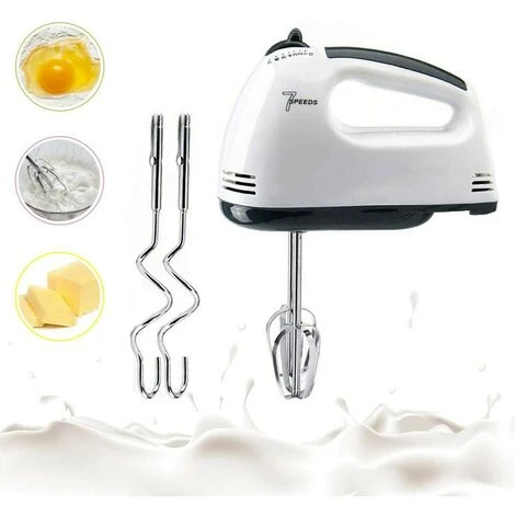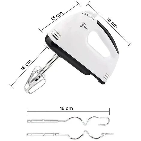Lo que no puede faltar en la cocina es definitivamente una batidora eléctrica de mano. Este modelo tiene 7 configuraciones de velocidad, puedes mezclar uno o más ingredientes al mismo tiempo. Dispone de 2 tipos de batidores: 2 batidores de gancho, es decir, los clásicos que se utilizan para montar nata, huevos, batir y mezclar la masa. Mientras que, los batidores de espiral se utilizan para trabajar masas particularmente duras y con cuerpo como, por ejemplo, la de pan o pizza.