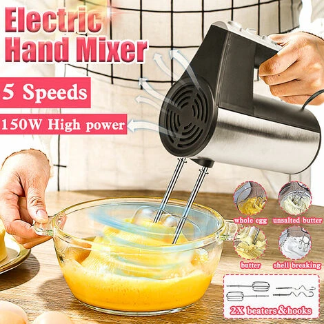 -150 vatios de potencia: palabra poderosa, bata y mezcle sin esfuerzo la masa para pasteles o tortas, bata huevos, bre, crema, etc.