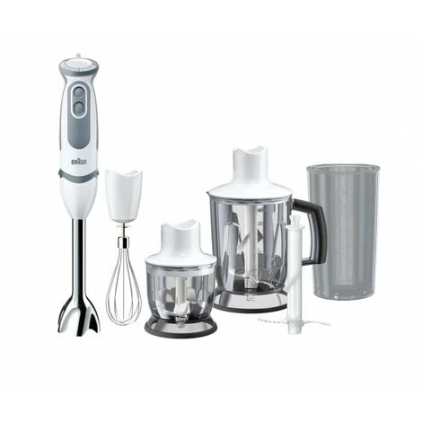 - Batidora de vaso/Picadora: mezcla sopas, bebidas y salsas. O utilízala como picadora para grandes cantidades. Incluye cuchilla para picado de hielo y cuchilla de corte.