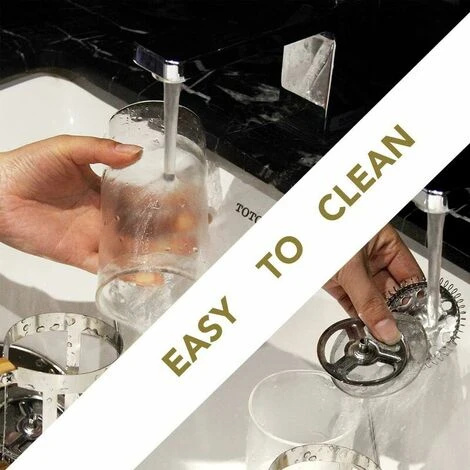 La cafetera está hecha de vidrio de borosilicato apto para uso alimentario con un filtro de acero inoxidable duradero. Resistencia a altas temperaturas, fácil de limpiar.