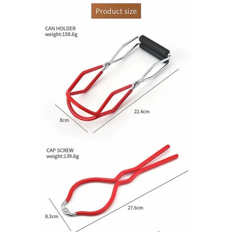 Seguridad con la herramienta de pinzas elevadoras de tarros de conservas, es conveniente para el uso de la cocina, el kit elevador de tarros de conservas es simple y fácil, de buena calidad. Adecuado para cocinar en una olla y algunas latas y botellas, el juego de elementos esenciales para conservas es un conjunto de productos que a todos les gustará después de usarlos. El asa recubierta de vinilo puede levantar con seguridad tarros de conservas de cualquier tamaño del agua hirviendo, haciéndolo muy fácil y manteniendo las manos a salvo del calor.