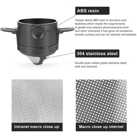 Fácil de limpiar: la parte de malla de acero de la taza ha sido pulida, después de su uso, los posos de café no se pegan fácilmente y ambos lados pueden ser lavado limpio.
