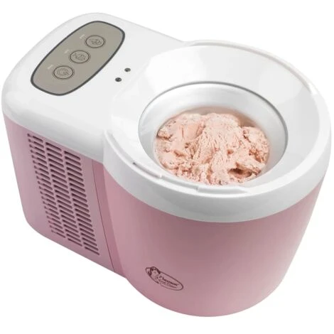 El potente motor de esta heladera de 90W de color rosa y de la marca Bestron AIM700 garantiza una mezcla consistente de helado cuando los prepara en casa.