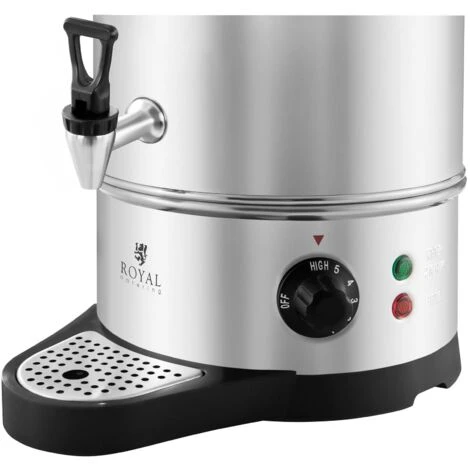 El hervidor de agua RCWK 10A de Royal Catering es el ayudante perfecto para preparar diversidad de bebidas calientes. Además de calentar té y café, el hervidor de agua también se puede utilizar para bebidas alcohólicas, tales como vino caliente. Por lo tanto este aparato es especialmente apropiado para los sectores de la gastronomía y la hostelería, así como en mercadillos navideños, ferias y otras fiestas.