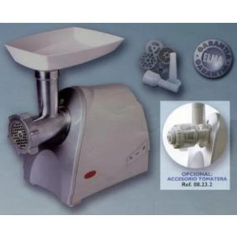 Máquina de picar eléctrica Multi5. La picadora eléctrica Multi 5 está dotada de altas prestaciones para que proceses tus alimentos con la mejor calidad. Sus accesorios completan a la perfección sus funciones. Se desmonta sencillamente, lo que facilita su limpieza. – Cabezal de aluminio fundido. – 385 x 220 x 243 mm. – Blanco y negro. – 3,2 kg. – Potencia 350W. 230V/50Hz. Capacidad de producción: 1 Kg/min.