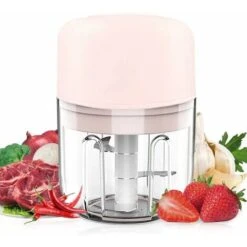 - Gran procesador de alimentos con: con 3 cuchillas afiladas, puede picar ajo, jengibre, pimientos, verduras, frutas, carne, etc. Y con función eléctrica, ahorra tiempo y relaja tus manos. El picador pequeño también es fácil de almacenar.