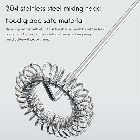 Nuestro espumador de leche está hecho de acero inoxidable de grado alimenticio batidor en espiral tamaño AAA, no se oxida ni se rompe con el tiempo.