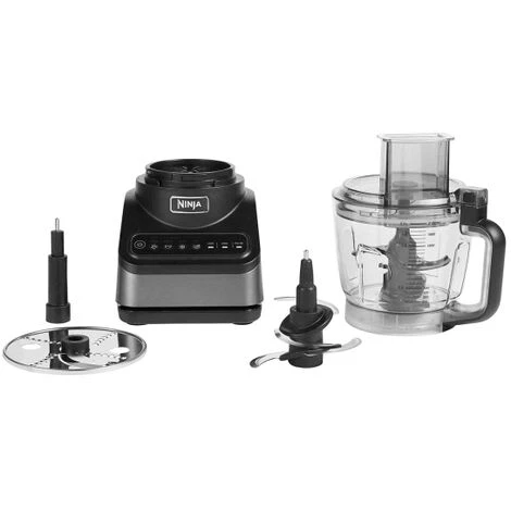 Robot de cocina Ninja con Auto-iQ: Prepara comidas con total precisión. Crea todos los platos que desees, desde hamburguesas, ensaladas, salsas, condimentos, masas y postres. Corta, rebana, ralla y mezcla con precisión gracias a sus accessorios intercambiables.