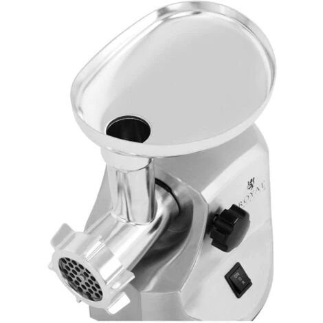 La picadora de carne eléctrica para uso profesional de Royal Catering destaca por su durabilidad y acabado de muy alta calidad. Su cubierta de acero y piezas en acero inoxidable son considerablemente más robustas que las de modelos similares de otras marcas. Gracias a sus accesorios, te ofrece una gran versatilidad, por lo que no solo podrás procesar hamburguesas, salchichas y demás productos cárnicos, sino también gran variedad de alimentos como tomates, pastas y frutas secas, entre otros.