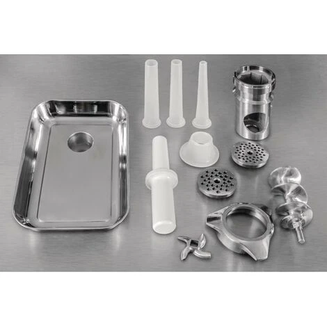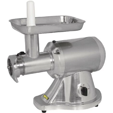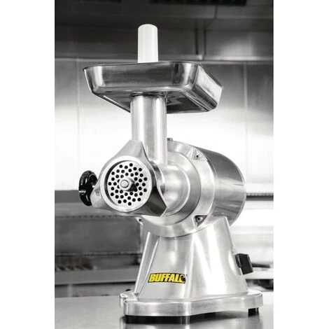 Picadora de uso intensivo con engranaje de precisión y eficiente motor con ventilador para su refrigeración. Función inversa para picar las carnes más duras. La picadora de carne Buffalo es perfecta para cocinas de restaurantes, catering o para carnicerías y charcuterías.