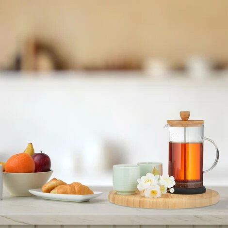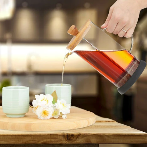 Con la cafetera de prensa, podrás disfrutar cada mañana de un café con todo su sabor y en pocos minutos. Llena la jarra con café en polvo grueso molido y vierte sobre él agua que ya no esté hirviendo. Después remueve el polvo, pon la tapa y tras 3-4 minutos presiona lentamente el émbolo hacia abajo por completo para separar el agua y del café. Para el té a granel, según el tipo de té, basta con utilizar agua caliente (hirviendo) y presionar el colador después del tiempo de infusión.
