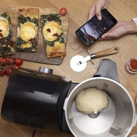 Robot de cocina con APP, 30 funciones, báscula y jarra de acero inoxidable apta para lavavajillas. Robot de cocina multifuncion con 30 funciones App Mambo para Smartphone Incorpora báscula Jarra de acero inoxidable velocidad cero Innovadora función sofrito Cuchara MamboMix para amasar. La jarra cuenta con una gran capacidad máxima de hasta 3,3 litros Cestillo de hervir para poder preparar hasta 4 elaboraciones al mismo tiempo. Incluye un completo recetario y acceso a la comunidad social interactiva El sistema inteligente de potencia calorífica Motor con doble engranaje Movimiento SlowMambo El tapón dosificador cuenta con un cierre de seguridad específico Completamente personalizable en todos los parámetros para ofrecer infinidad de posibilidades en la cocina diaria. La mariposa dispone de un refuerzo de silicona Incorpora una vaporera de dos niveles Cuenta con Security Check System Gran pantalla digital altamente intuitiva Dispone de 10 velocidades y temporizador Espátula recubierta de silicona Composición: Robot de cocina multifunción Mariposa Espátula Cestillo Cuchara MamboMix Cuchilla Vaporera de dos niveles Jarra de acero inoxidable Vaso medidor Manual de instrucciones Universo: guía, recetario, canal Youtube, blog