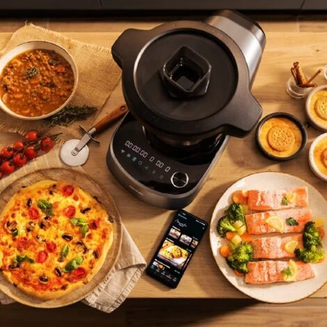 Robot de cocina wifi con 37 funciones, APP para cocina guiada y manual, sistema autolimpieza, accesorios OneClick, báscula integrada, jarra inox y jarra antiadherente Habana. Robot de cocina multifunción con 37 funciones · Incluye jarra Habana de acero inoxidable con revestimiento cerámico Cambia los accesorios en segundos con el sistema pull&go diseñado para mambo. Disfruta de la App Mambo para Smartphone c Incorpora báscula Jarra de acero inoxidable de alta calidad Velocidad cero Función sofrito Exclusiva cuchara MamboMix para amasar. La jarra cuenta con una gran capacidad máxima de hasta 3,3 litros Cestillo de hervir Incluye un completo recetario y acceso a la comunidad social interactiva El sistema inteligente de potencia calorífica Motor con doble engranaje Movimiento SlowMambo El tapón dosificador cuenta con un cierre de seguridad específico Completamente personalizable en todos los parámetros para ofrecer infinidad de posibilidades en la cocina diaria. La mariposa dispone de un refuerzo de silicona Incorpora una vaporera de dos niveles Gran pantalla digital altamente intuitiva Dispone de 10 velocidades y temporizador ajustable Espátula recubierta de silicona p Nuevo diseño de tapa con sistema de bloqueo. Composición: Robot de cocina Mambo Jarra Habana con revestimiento cerámico Cuchara MamboMix Cestillo de hervir Mariposa Vaporera de dos niveles Espátula Manual de instrucciones Manual APP