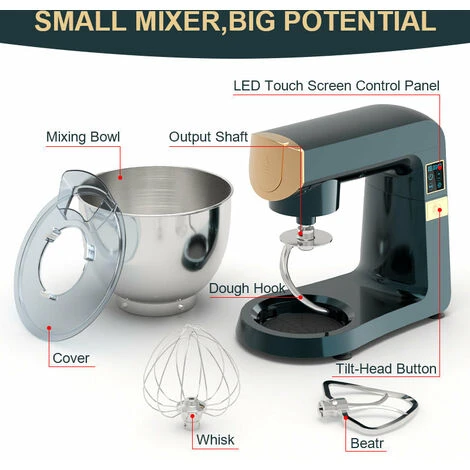 Procesador de alimentos, batidora de masa práctica, procesador de alimentos multifunción, amasadora profesional estable y rápida con 10 velocidades. Tazón sólido de 7 l y 1800 W con batidor de gancho. Fácil de amasar con un potente motor de movimiento planetario de 1800 W que garantiza una mezcla uniforme de los ingredientes. Resulta fácil y rápido amasar masa de pizza, masa de pan, masa de panqueques, masa de brioche… ¡harás pasteles más rápido! Producto garantizado por 2 años. PANTALLA LCD DIGITAL de nueva generación con temporizador incorporado. Pantalla táctil. Luz indicadora LED. Robot de repostería con protección contra salpicaduras extraíble transparente y 3 accesorios para amasar y batir. Todas las piezas son fáciles de cambiar y lavar. Gran capacidad: Procesador de alimentos multifuncional con tazón de acero inoxidable sólido de doble asa de 7L, es adecuado para familias numerosas o restaurantes. Fácil de limpiar, prefiera el lavado a mano. Rápido y estable: Con cuerpo en ALUMINIO. Robot pastelero con pulsador de 10 velocidades + Pulsador. Muy rápido de mezclar. Tiene 4 pies antideslizantes. Muy estable gracias a las ventosas en el suelo, se asienta firmemente en tu superficie de trabajo y no resbala ni siquiera a máxima velocidad. Silencioso: Procesador de alimentos muy silencioso con ruido por debajo de 68 DB. Sistema de bloqueo. protección contra el sobrecalentamiento. Es un robot sólido, robusto y agradable para hornear. Motor de transmisión directa 8840 Estructura de aluminio. Fuente de alimentación: 220-240V CA, 50/60Hz. Ideal para mezclar masa de pizza, hojaldre, masa quebrada o mahonesa para batir, nata montada, claras de huevo o incluso para amasar masa de pizza, masa de levadura. Mezcla, bate, prepara, ¡tú decides!
