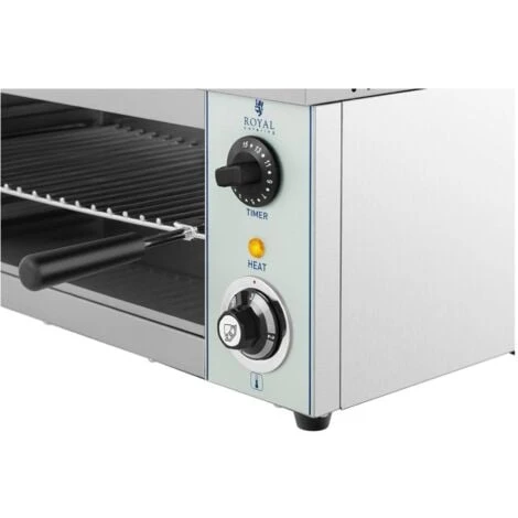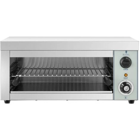 El horno salamandra RCES-2000-EGO le permitirá preparar y calentar bocadillos, tostadas, pizzas, etc. Este horno tostador de Royal Catering le ofrece suficiente espacio para varios tamaños de moldes, gracias a la posibilidad de regular la bandeja en diferentes alturas. Además, el moderno minutero incorporado le permitirá controlar el tiempo de horneado cómodamente. Los termostatos de la marca alemana E.G.O han sido utilizados durante años en el sector médico e industrial. Recientemente, estos precisos y fiables termostatos, han sido incorporados al sector de la hostelería. Los productos E.G.O se distinguen por su seguridad, precisión y eficiencia. Asimismo, el minutero integrado permite programar el tiempo hasta 15 minutos y emite un sonido una vez acabado. El tostador trabaja con una potencia de 2000 vatios, lo que permite regular la temperatura entre 50°C y 250°C. Gracias a su fabricación en acero inoxidable y a la bandeja recogemigas integrada, este tostador resulta muy fácil de limpiar.
