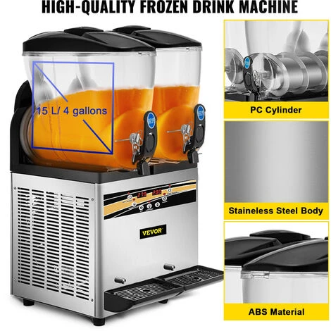La máquina comercial de granizados de dos tanques, 30 L / 8 Galones US, puede servir cualquier cosa, desde alcohol fuerte y batidos hasta café / té helado o cócteles congelados. Seguramente ampliará sustancialmente su menú de bebidas.